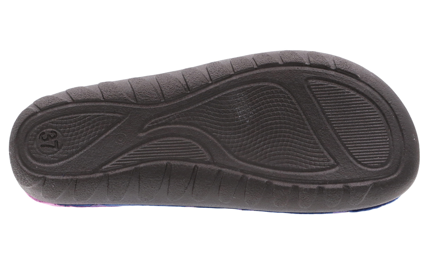 INBLU sklep - Polskie obuwie. Kapcie damskie obuwie domowe, pantofle domowe IN-ET-24 produkcji polskiej o charakterze rekreacyjnym wykonane z ekologicznego materiału tekstylnego. Wnętrze wyłożone miękkim materiałem tekstylnym o dużej zawartości bawełny, dobrze przepuszcza powietrze i zapewnia wysoki komfort. Wkładka wewnętrzna profilowana, tekstylna. Spód plastycznie profilowany wykonany z lekkiego i elastycznego tworzywa - poliuretanu, idealnie dopasowany do kształtu anatomicznego stopy, zapewnia sprężystość i bardzo dobre przenoszenie obciążeń na podłoże. Użyte materiały i zastosowana technologia zapewnia wysoki komfort użytkowania i wygodę. Obuwie domowe INBLU jest szczególnie polecane dla osób o stopach wrażliwych lub alergicznych.