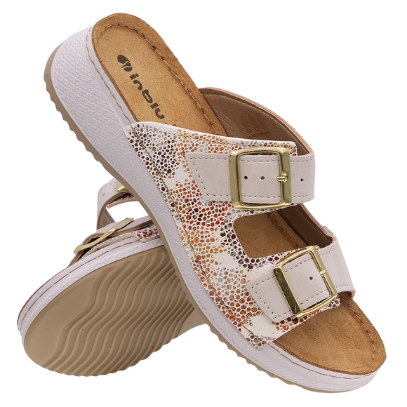 - INBLU sklep - obuwie damskie, klapki profilaktyczne o charakterze rekreacyjnym, produkcji polskiej. Wierzch z tworzywa skóropodobnego. Wkładka wewnętrzna z tworzywa skóropodobnego. Spód z lekkiego, sprężystego tworzywa PU.