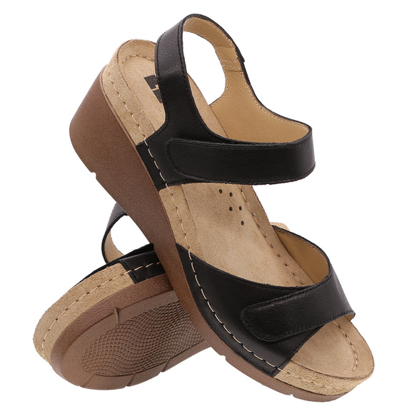 - LEON - obuwie damskie, sandały profilaktyczne o charakterze rekreacyjnym. Wierzch ze skóry naturalnej. Wkładka wewnętrzna, profilaktyczna z naturalnej skóry. Spód plastycznie profilowany z lekkiego, sprężystego tworzywa PU.